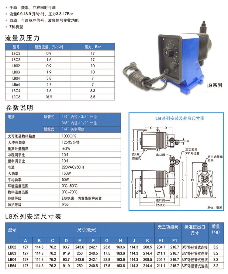 電磁隔膜計量泵LB02EB-PTC1 帕斯菲達PP泵頭脈沖控制加藥泵清水泵
