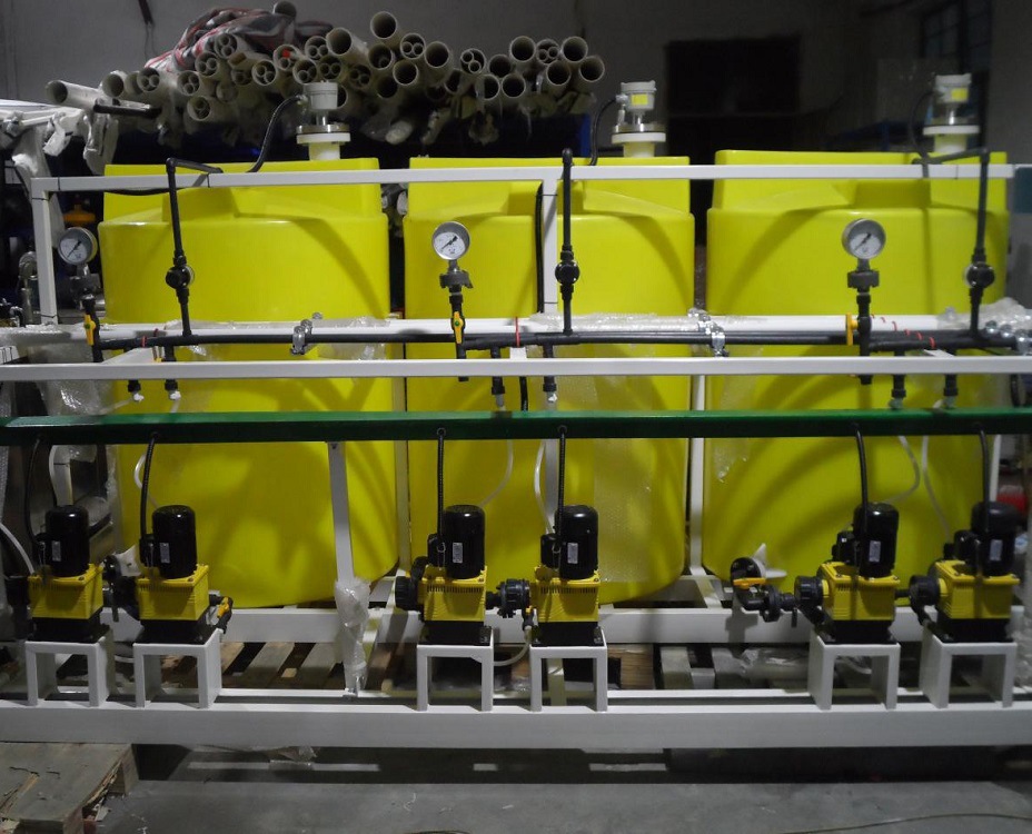 本裝置主要包括藥液溶配系統、計量泵投加系統、安全系統和控制系統等四大部分組成。