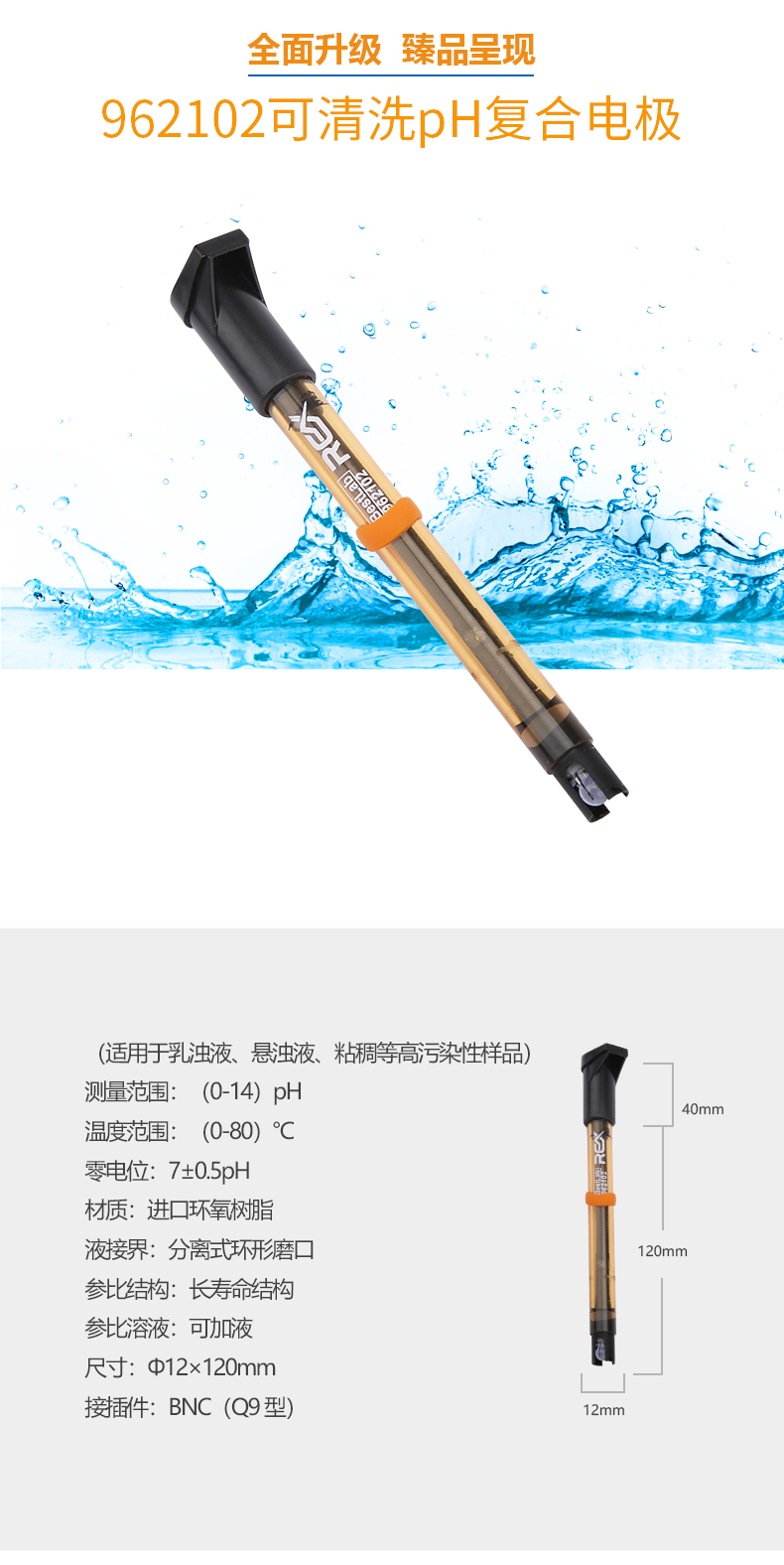 【雷磁】雷磁高端ph電極高精度 962102可清洗ph復(fù)合電極