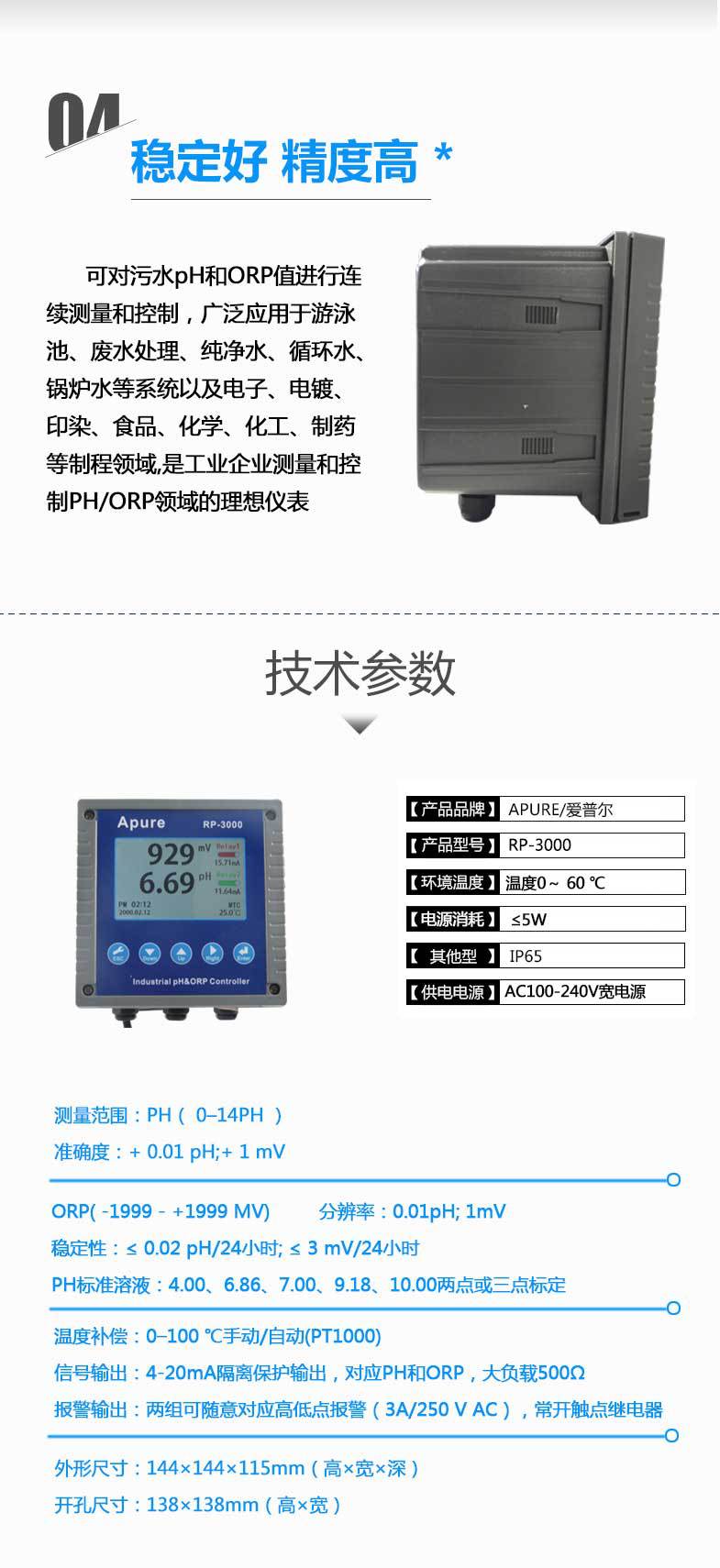 APURE愛普爾工業在線PH/ORP控制器RP-3000
